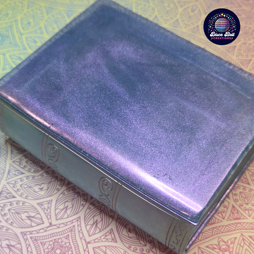 This captivating handmade resin box, designed to look like an ancient, mystical book, is the perfect blend of decorative elegance and discreet storage. Its lustrous, shimmery finish (like the beautiful purple in the example!) adds a touch of magic to any shelf, desk, or bedside table.