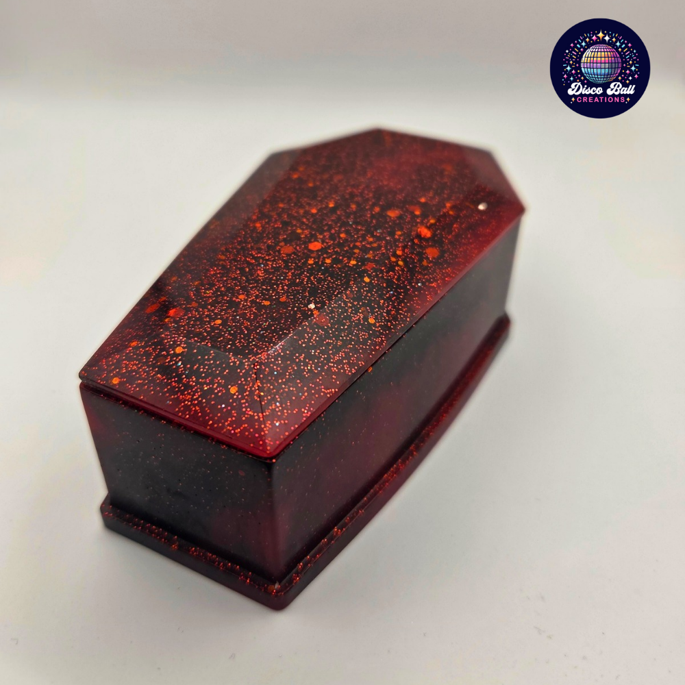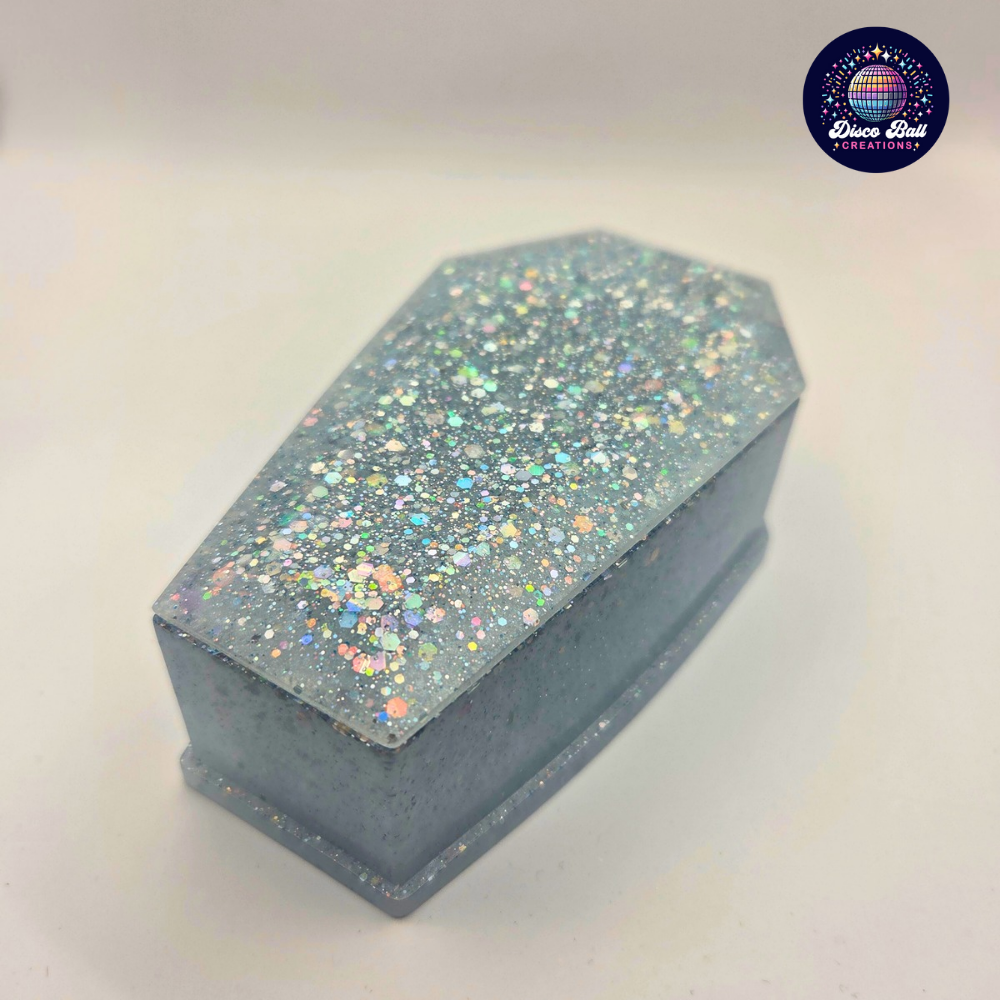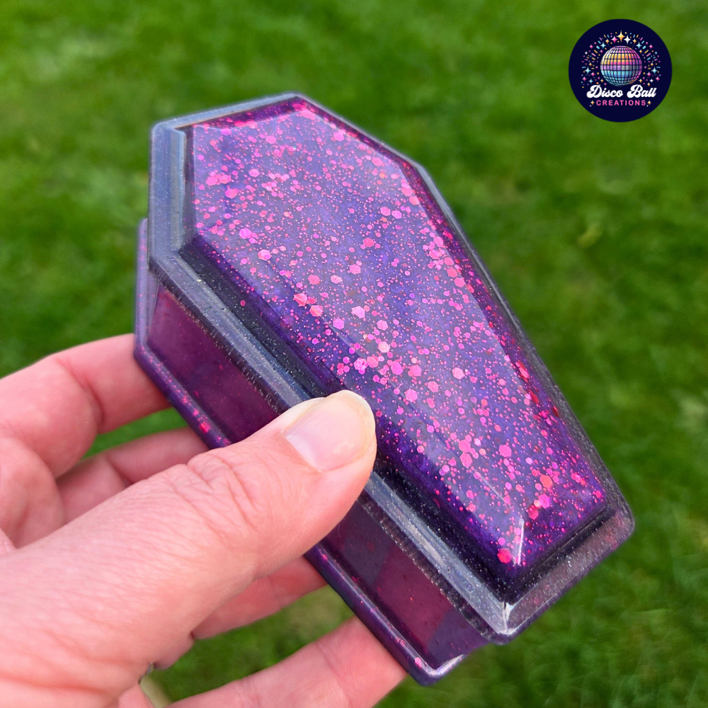 Please note: As each piece is lovingly handmade, slight variations in colour, glitter distribution, and minor imperfections may occur, making your coffin box truly unique. Please allow 1-2 weeks for custom creations.
